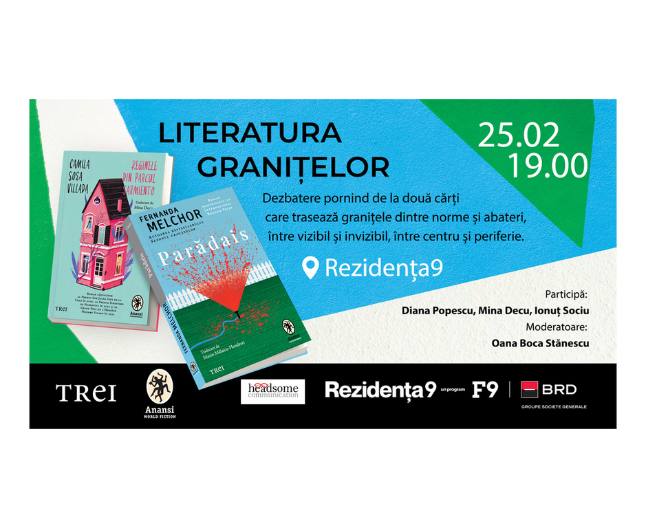 București (MEDIA EXPRES) / 11 feb 2026 / Editura Trei organizează miercuri, 25 februarie, de la ora 19.00, la Rezidența9, dezbaterea „Literatura granițelor”, care pune în dialog două romane contemporane traduse recent în limba română în imprintul Anansi.World Fiction, „Parădais” de Fernanda Melchor și „Reginele din Parcul Sarmiento” de Camila Sosa Villada, potrivit organizatorilor.