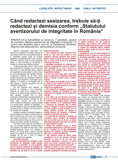 Raportul este disponibil aici: www.avertizori.ro/resurse. în oamenii din instituțiile publice ostilitate,